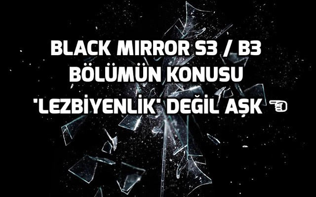 BLACK MIRROR SEZON 3 BÖLÜM 3 LEZBİYEN AŞKIYLA ÖN PLANDA ilk başlarda diğer bölümlerde olduğu gibi herşey çok sıradan ilerlerken tam ortalara doğru öyle bir fark atıyor ki gerçeklik algısı… Sanırım genel olrak Black Miror insanların gerçeklik algılarıyla şimdilik ütopik bir bakış açısıyla oynuyor. Üstelik bu bölümdeki ütopik bakış açısının konusu son derece görünür ve rahat bir şekilde lezbiyen aşk üzerine kurulu.